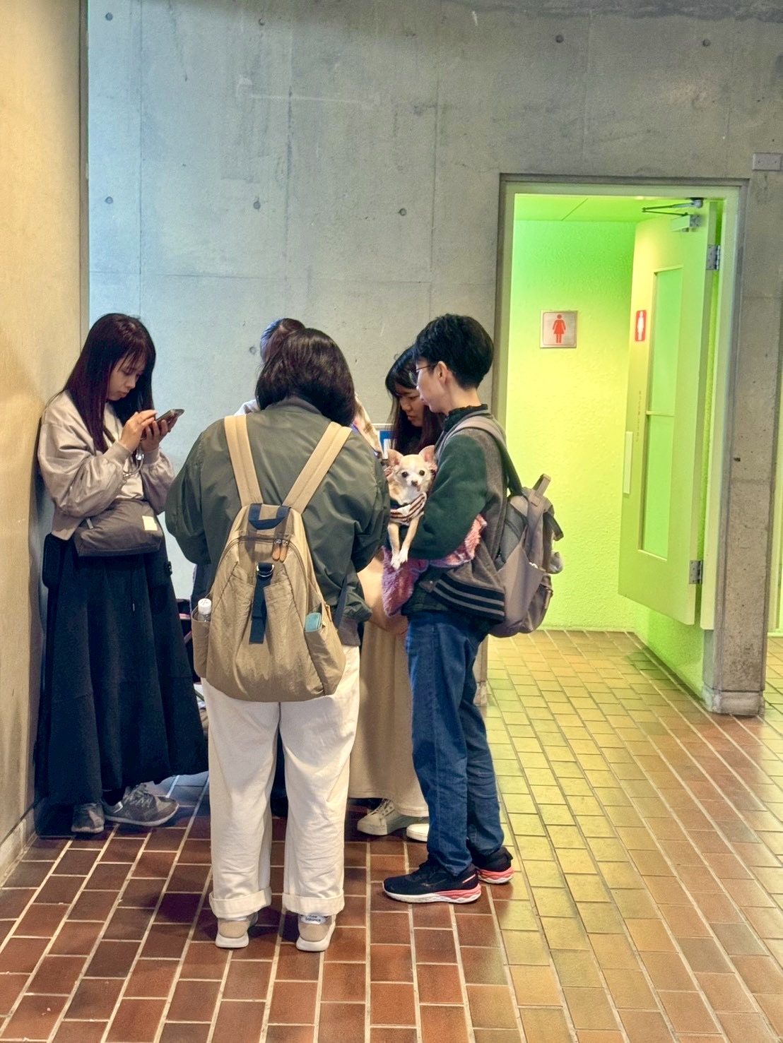 寒すぎて風を避けるためにトイレの前で作戦会議中