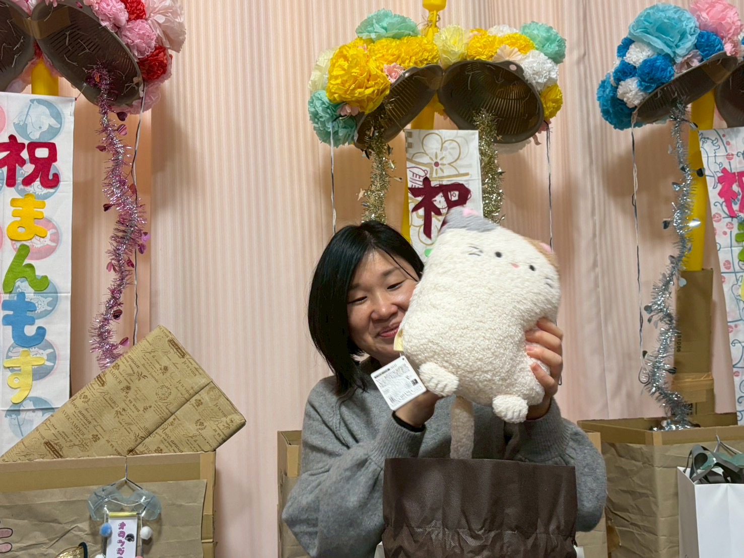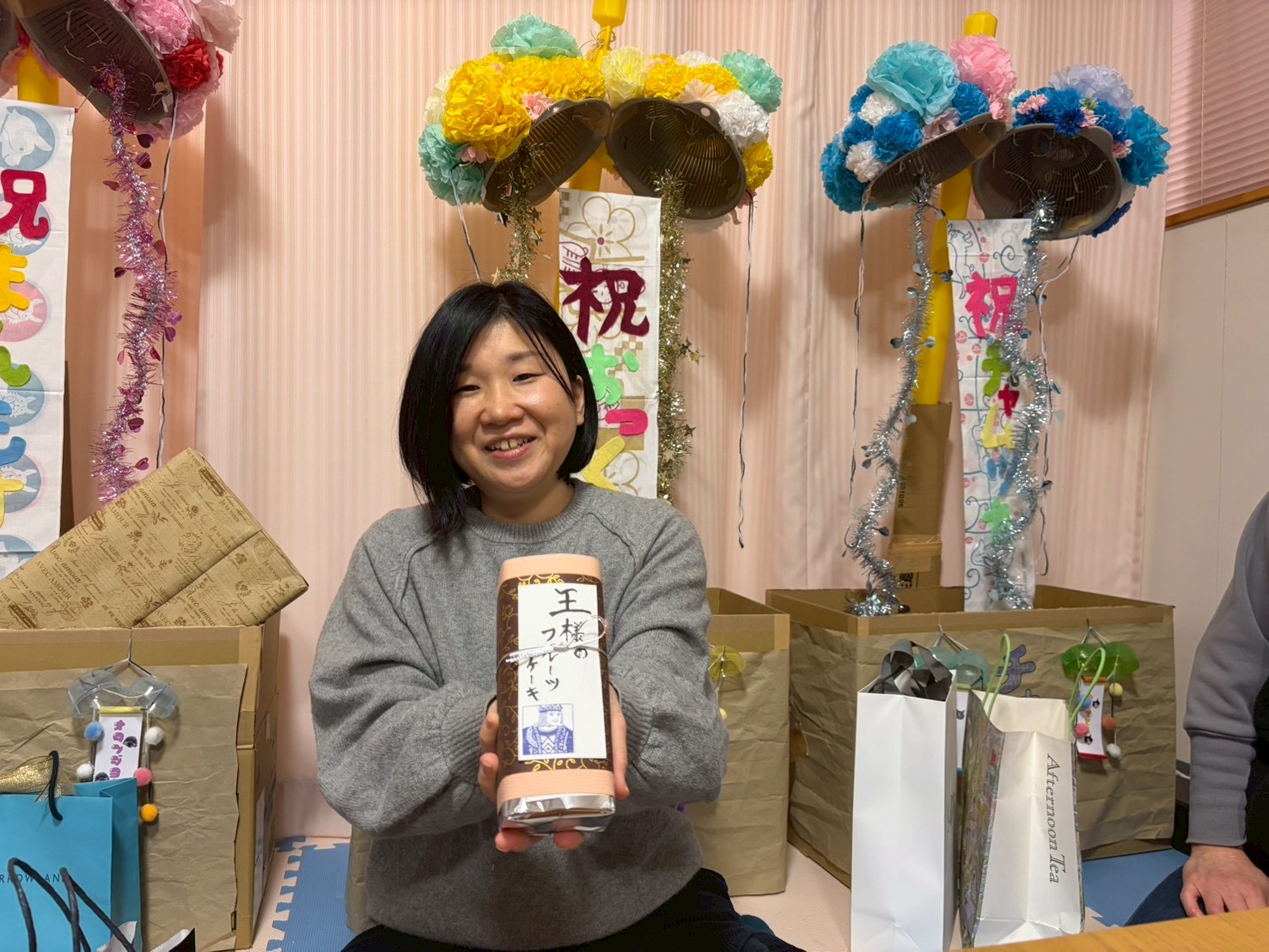 1月生まれの「めでたい会」♪ トップページ 「せとけん」ブログ 1月生まれの「めでたい会」♪ 2026.02/28 マヌルネコほどではありませんが、まん丸の三毛猫を飼っている、おっくーです(*´∇`*) さて今回は、1月の誕生日会の模様をお伝えします♪ 1月の誕生日は3人! 私とまんもすとチャムツカです 自分の誕生日を自分のブログに書くのはちょっぴり恥ずかしいですが、 自分だけではないので書いちゃいます笑 まずは、準備の様子からご覧ください 誕生日の人が3人いるということは、必然的に準備をする人が減る! ということは…準備がとても大変! それにも関わらず、こんなに素敵な物を用意してくれました(*≧∀≦*) それがこちら 可愛いお花のクス玉をありがとうございました〜(*^o^*) ピザとバースデーケーキでお祝いしてもらいました♪ 続いて、プレゼントの一部を紹介します! まずは、チャムツカのプレゼント プレゼントその① 大好きなコーヒーを貰ってテンションが上がるチャムツカ プレゼントその② チャムツカのイメージにピッタリな洋服 プレゼントその③ お洒落な刺繍のハンドタオル でも…よく見てください 分かりますか? ぐるっと一周「ナポリタン」の文字が刺繍されています∑(゚Д゚)凄い! もう1枚はロールケーキです お次は、まんもすのプレゼント プレゼントその① 大好きな名探偵コナンの、うるちゅるPOP SEALを食い入るように見るまんもす! プレゼントその② 大好きなあつまれ動物の森グッズを貰い、すぐに組み立ててしまったまんもす! プレゼントその③ JILL STUARTのチークケースを見て、 「セーラームーンみたい♪」と喜ぶまんもす! 最後は、私のプレゼント プレゼントその① 名前からして高級そうなフルーツケーキはドライフルーツがぎっしり詰まっていて、 めっちゃ美味しかったです(*´▽`*) プレゼントその② フィンレイソンの可愛い巾着バッグ 私好みの色です♪ プレゼントその③ 大好きな三毛猫グッズ! 三毛猫グッズが増えてホクホクしています(*´ω`*) いくつになっても、お祝いしてもらうのは嬉しいですね(*´꒳`*) 次は、3月に誕生日を迎えるあの人です♪ Tweet « 明日は何の日?